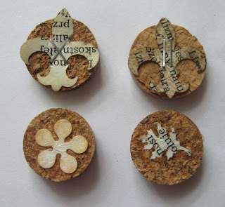 - и сразу же за этой идеей пришла вторая-использовать эти элементы как маску и побрызгать пробковые кругляшки глиммер-мистом. Но это еще не все) Сами кругляшки положить на лист для черчения, и таким образом получить фон в крупный горох.