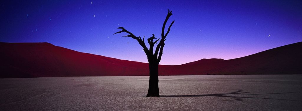 Пустыня Соссусфлей. Мертвое дерево. Цвета дюн Соссусфлея имеют свойство изменять цвет от абрикосового до оранжевого и даже до красного и бордового. Они ослепительно контрастируют с белыми солончаковыми ямами, лежащими в основания дюн