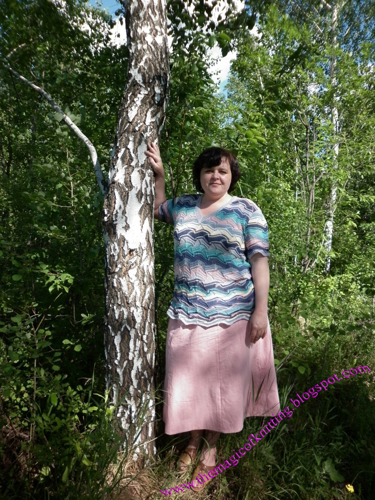 Давно посматривала на узоры миссони и вот, наконец, связала себе кофточку. Пряжа АННА 16 понравилась мне еще при вязании шали, поэтому я заказала в Кудели много разных цветов (для шалей и ирландии). После многолетнего вязания крючком я была удивлена расходом пряжи - всего 250 г на мой не маленький размер :). Спицы №3,5 (круговые).