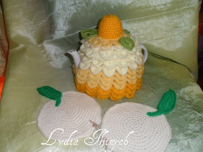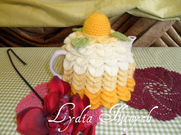 Мне так понравилось вязать грелочки на чайники,что не могу остановиться.Под любимую программу в тв.,вечерком вяжется незаметно и вот...очередной шедеврик.Назову ее "летняя".