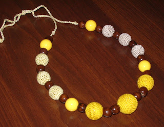 А все началось с необходимости покупки слинга после рождения малыша. В интернете я смогла подобрать самую, на мой взгляд, подходящую и безопасную для ребенка модель. Во время своих поисков я наткнулась на слово "слингобусы". Я понятия не имела, что это такое и для чего оно надо, но любопытство заставило меня все же поискать определение этому слову. Найдя достаточно информации, мне тоже захотелось приобрести эти чудо-бусики, но оказалось, что в детских магазинах их нет, более того, многие продавцы о таком даже не слышали. Я пришла к выводу, что проще найти их в интернете и заказать. И тут очередная проблема... ЦЕНА!!! Все понравившиеся мне бусы стоили, мягко сказано, дороговато. Я подумала: неужели я не смогу сама их связать? Стоит попробовать... Как оказалось, подходящих материалов нашлось не очень много, поэтому мои первые слингобусы получились не совсем такими, как хотелось бы. Выбрав время, я зашла в магазин пряжи и фурнитуры, где и приобрела все необходимое - нитки поярче, бусины покрупнее...