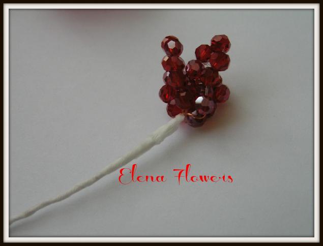 Потом,надо сделать серединку красивую,я взяла бусины стеклянные,нанизала их на проволоку,скрутила,остаток проволоки обмотала бумагой.У вас может быть любая другая серединка.Фантазия вам в помощь.