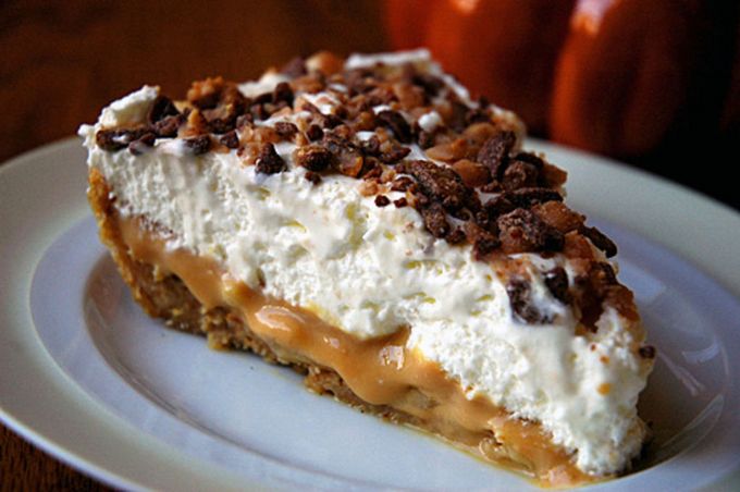 Для начинки: сгущенное молоко (вареное); 3 банана; 450 мл сливок; 2 ст. л. сахарной пудры; какао; кофе; шоколад.