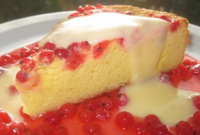 Бисквит: 120 г кукурузной муки, 120 г коричневого сахара (у меня белый), 4 яйца, 375 мл молока, 150 г ягод, щепотка соли, 3 ст. ложки ликера амаретто (у меня без ликера).