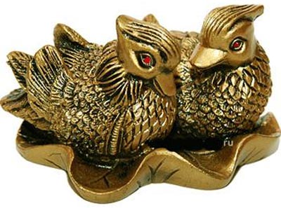 Парные фигуры символизируют природное соединение двух начал - мужского и женского. Наиболее яркими парными символами фен-шуй являются пара уточек-мандаринок, пара резвящихся рыб или следов,символизирующих следы Будды. Впрочем, вы можете разместить любые символы, которые в ваших представлениях символизируют любовь - лебедей, голубков, фигурки мужчин и женщины...