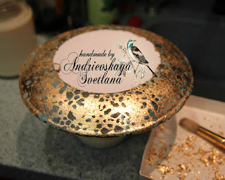 10. Когда мордан станет прозрачным, приклеиваем поталь золотого цвета.
