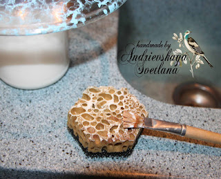9. На ту же губку наносим кистью водно-акриловый мордан и снова как бы «рисуем» фон. Ждём 20-30 минут.