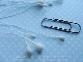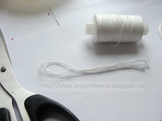 Для тычинок использую х.б. нить (толщина 100). Нарезаю на отрезки длиной 10 см и пропитываю их клеем ПВА. После засыхания они становятся жесткими.