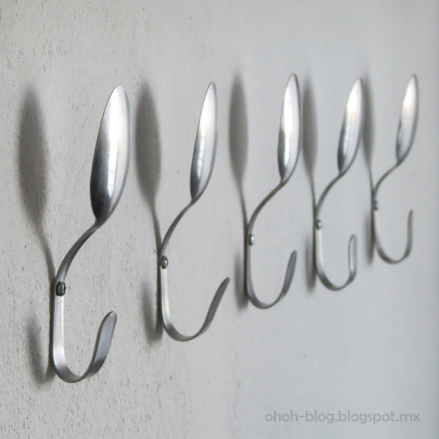дает хороший совет: делать не одну дырку в ложке, как сделала она, а две. В этом случае крючок будет держаться устойчиво в вертикальном положении, а не поворачиваться вокруг оси.