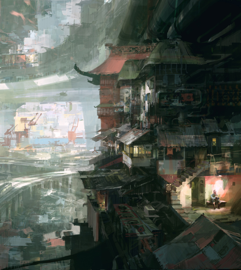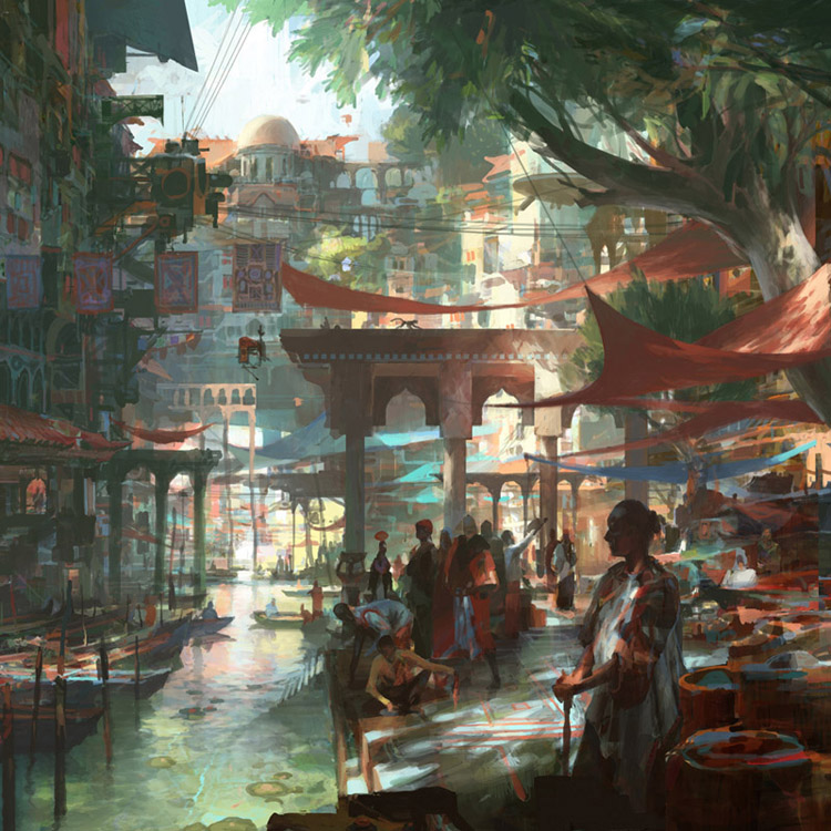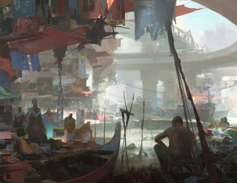 Theo Prins is a arguably one of the best technical digital artist I’ve seen. A Washington state, based artist that normally draws urban sprawls, markets and things that fly.