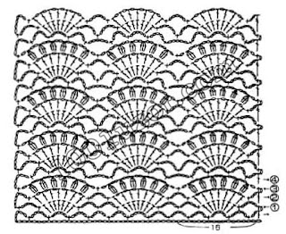 Я перебрала и перепробовала несколько узоров крючком, остановилась на трех, их схемы здесь. А вообще выбор узоров в интернет-пространстве велик. Я рекомендую именно веерные узоры, но возможно у вас другие предпочтения.