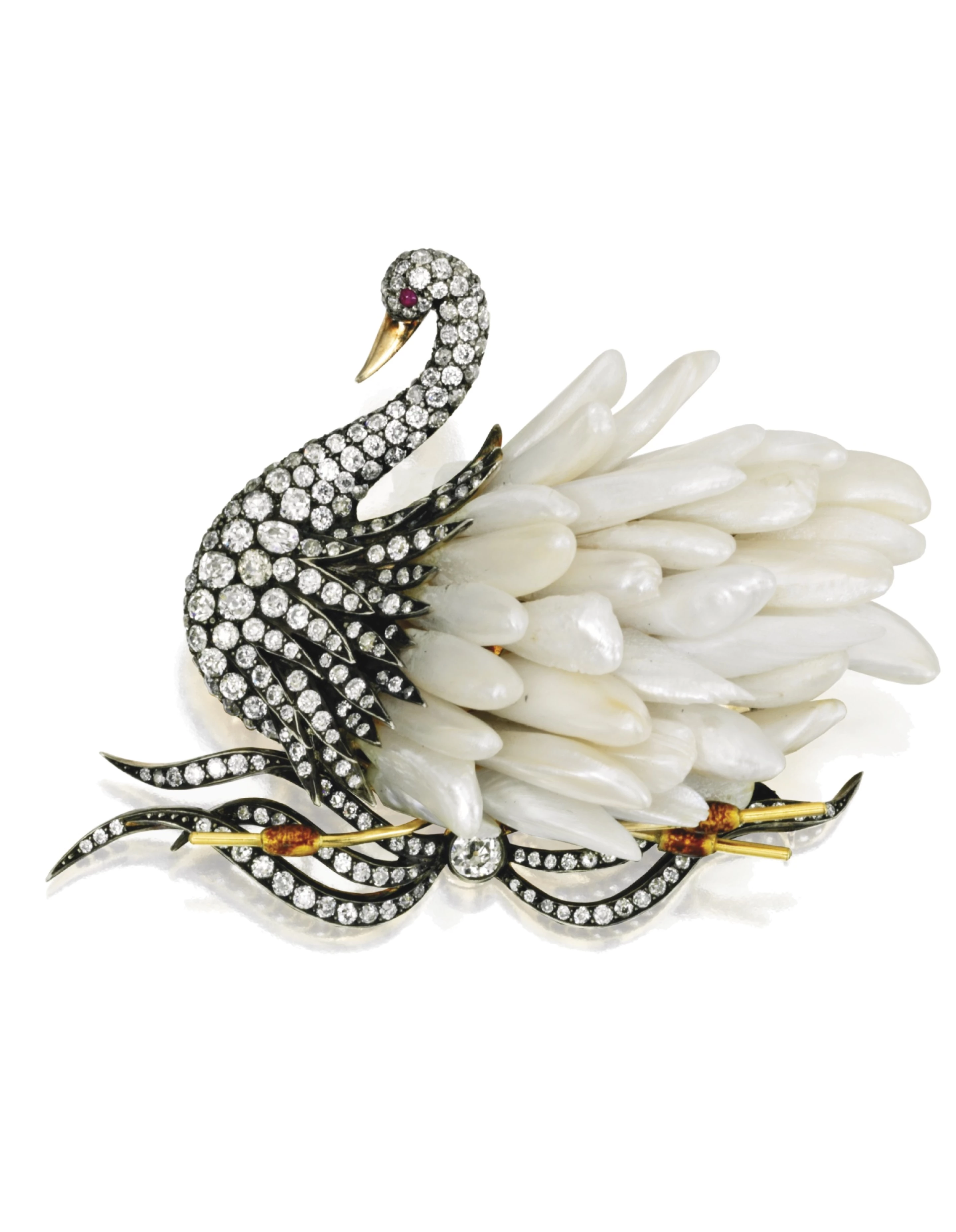 Gold, Silver, Freshwater Pearl and Diamond Swan Brooch