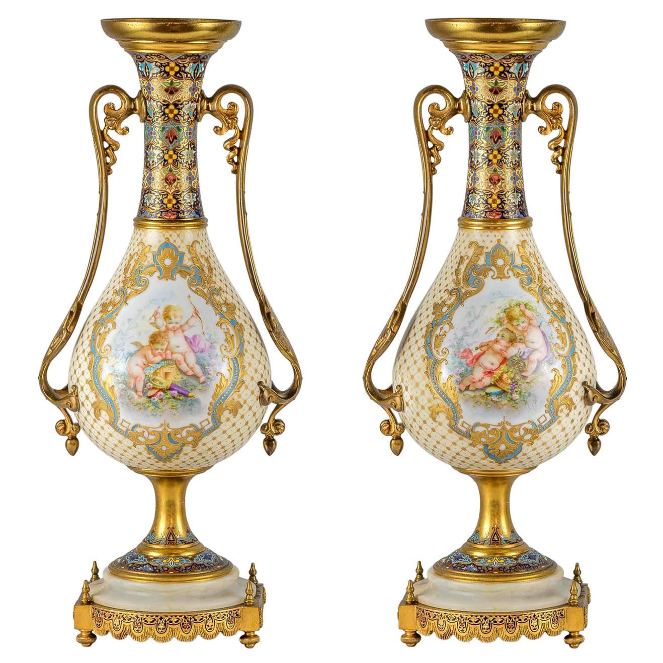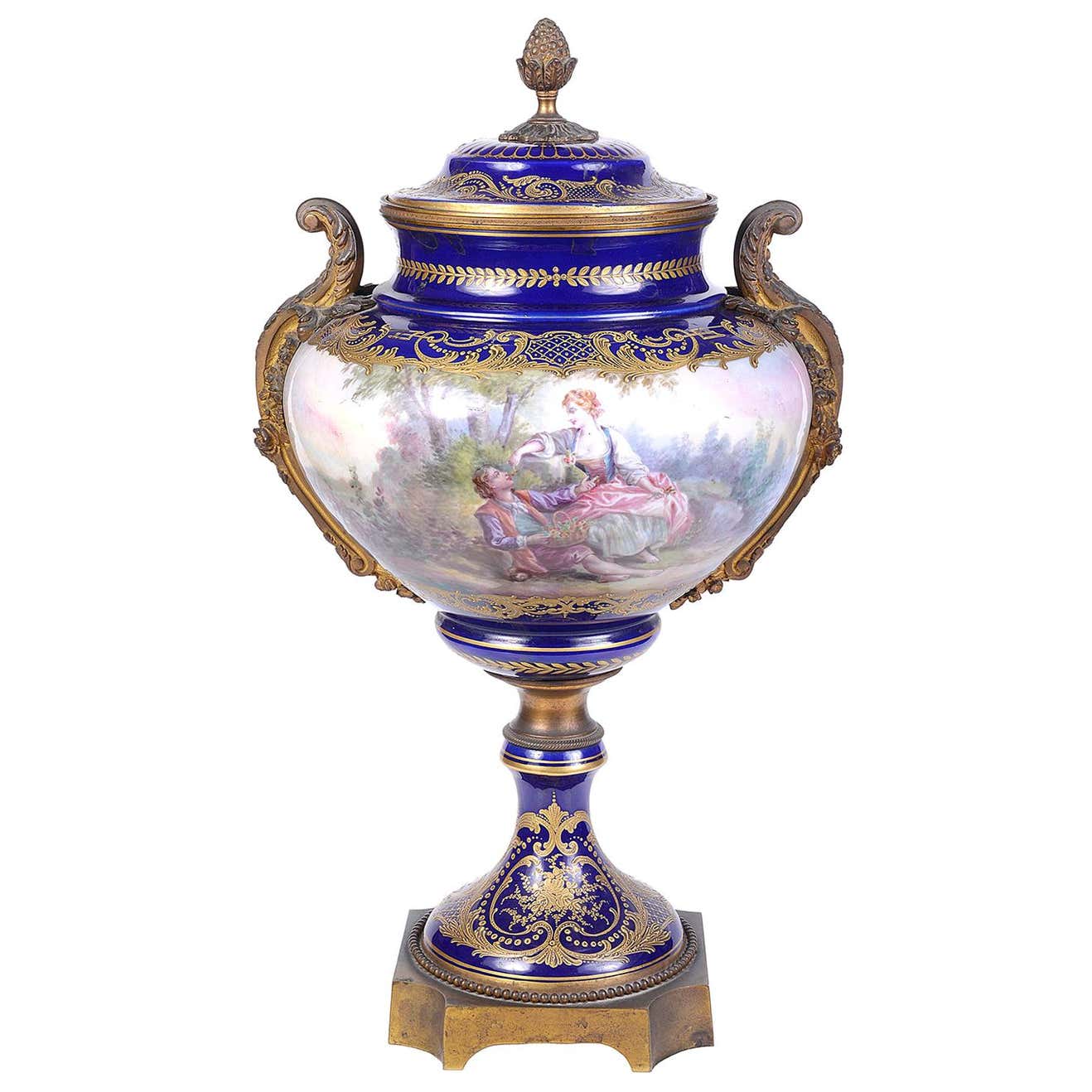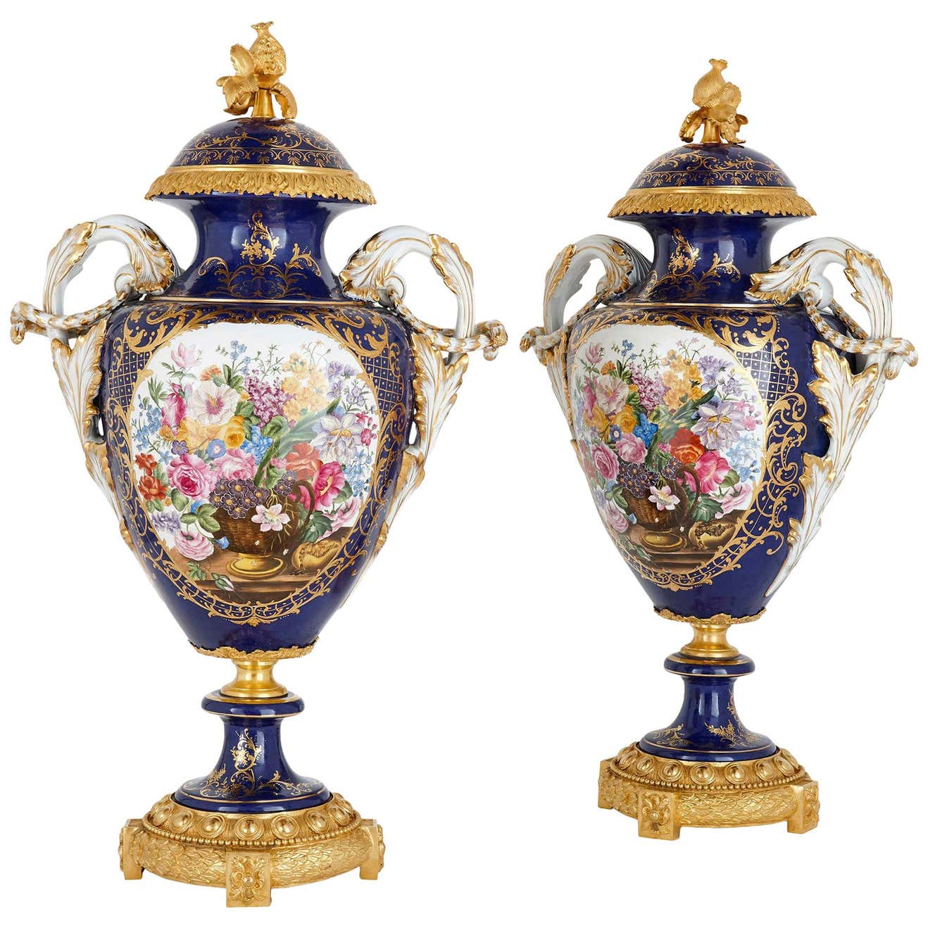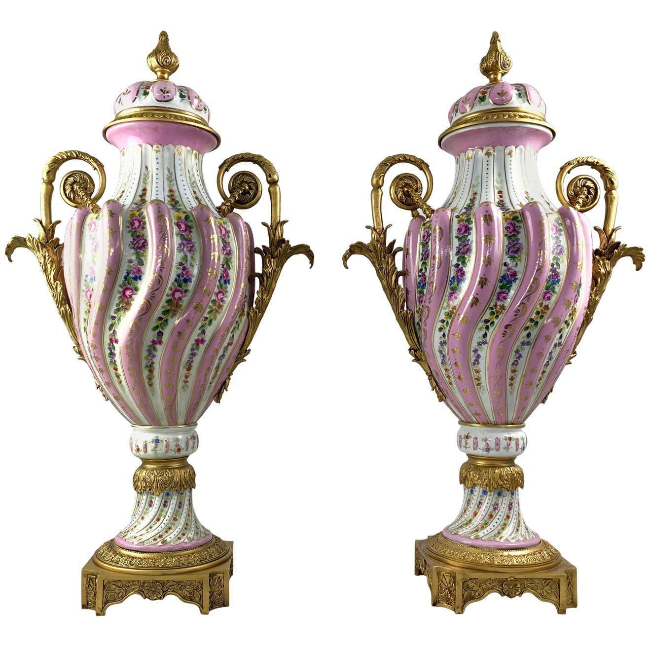 Pair of Large Antiques French Ormolu-Mounted & Painted Pair of Sèvres Porcelain