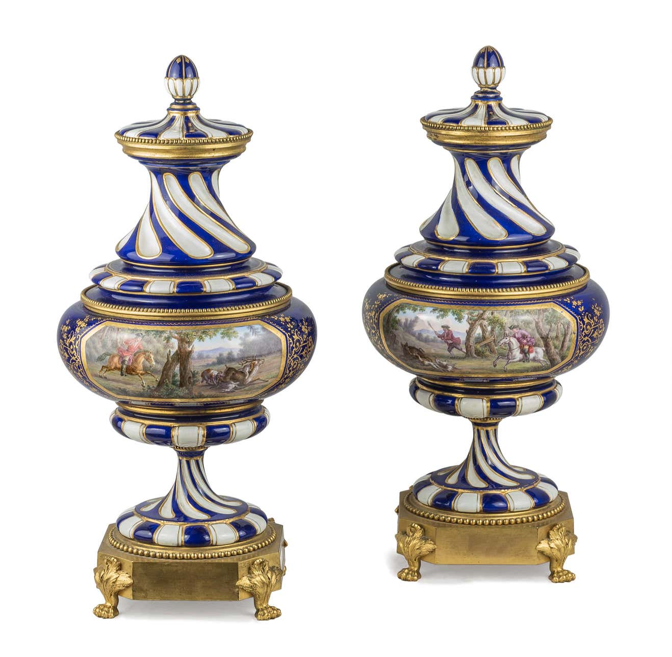 A pair of large gilt-bronze mounted `Sèvres' style porcelain vases and covers Napoleon III,
