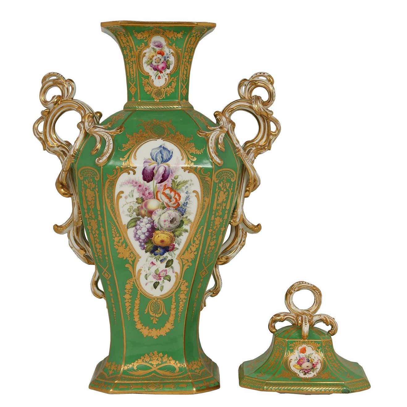 A PAIR OF NAPOLÉONIC SÈVRES-STYLE IMPERIAL GREEN-GROUND PORCELAIN VASES AND COVERS FRANCE,