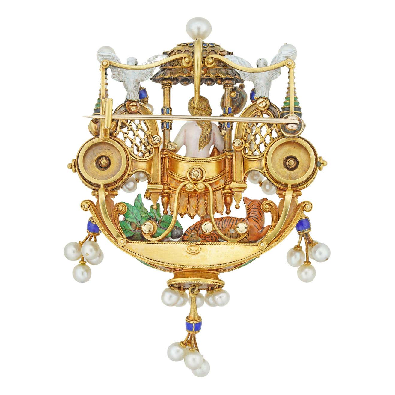 gold, enamel, diamonds, rubies, pearls