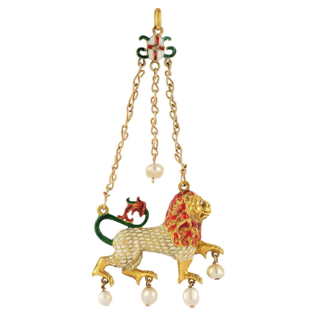 Renaissance Revival Enamel & Pearl Lion Pendant