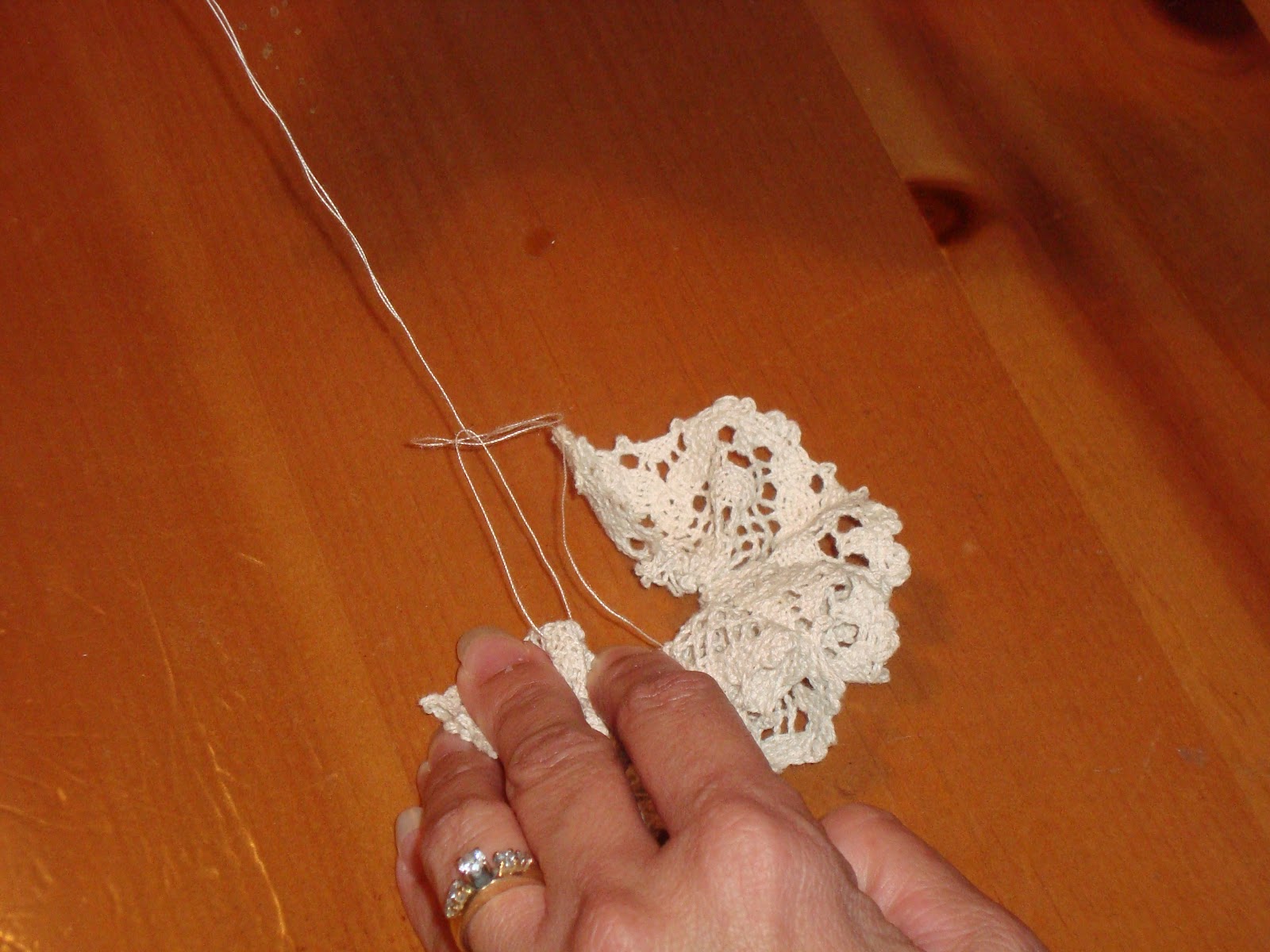 Нанизываем на нитку ленту кружева