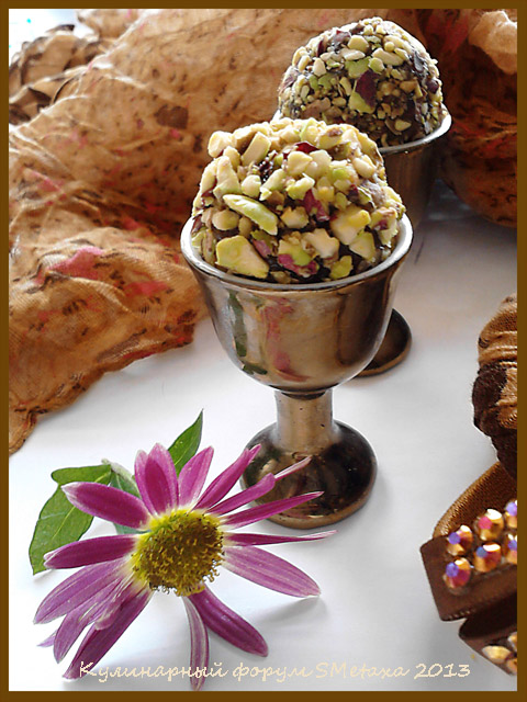 охладив обмакнуть в нем шарики, поставить конфеты в