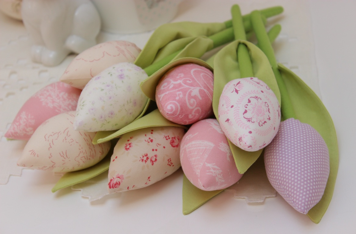 Букет тюльпанов. Листья сделаны из флиса, цветы высотой 25см