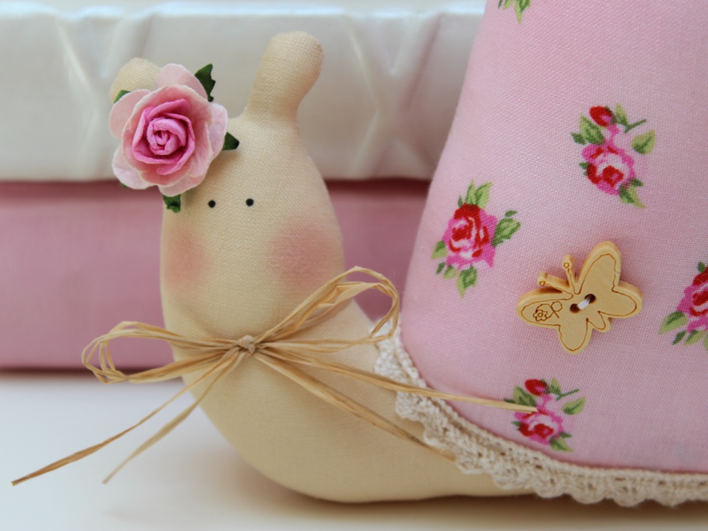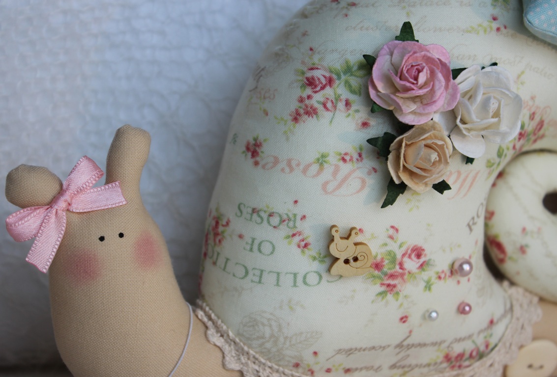 Тильда-улитка в стиле винтаж+шебби-шик, розы сделаны из бумаги