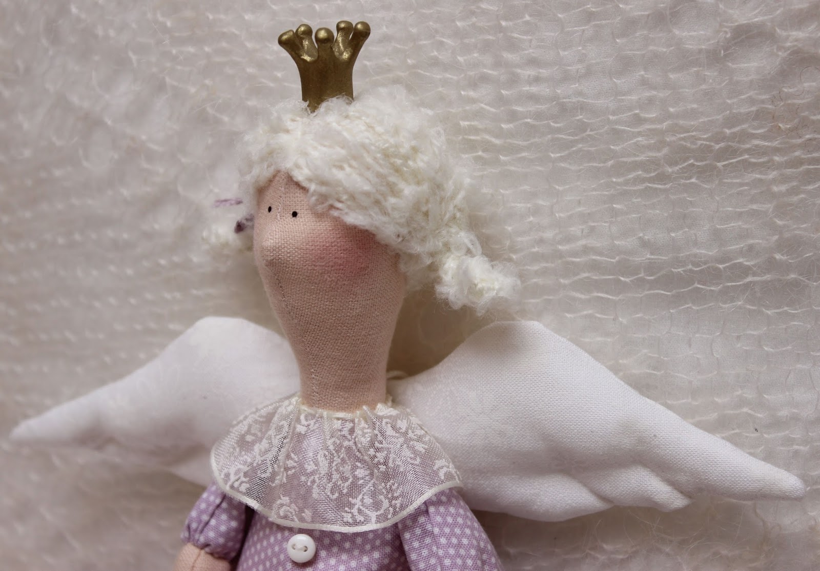 Прежде я любила делать тильда животных, таких как кролики, мишки и т.д. Когда я сделала свою первую Тильду ангел, я поняла, что я влюбилась в них. Это очень приятно декорировать и это делает меня счастливой. Она около 66 см высотой и для ее платья я использовала Тильда ткань, которую я назвала лаванда.