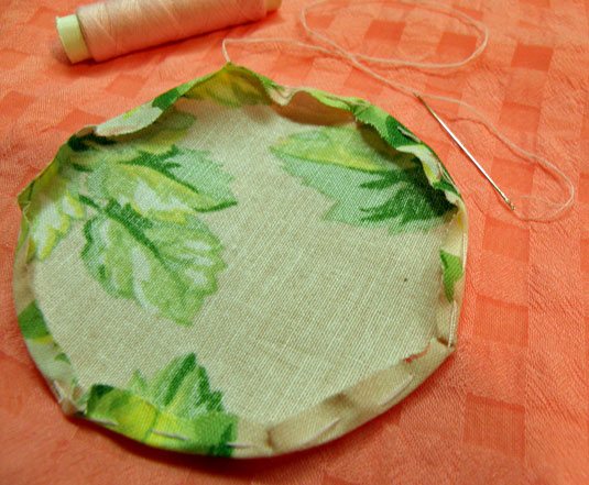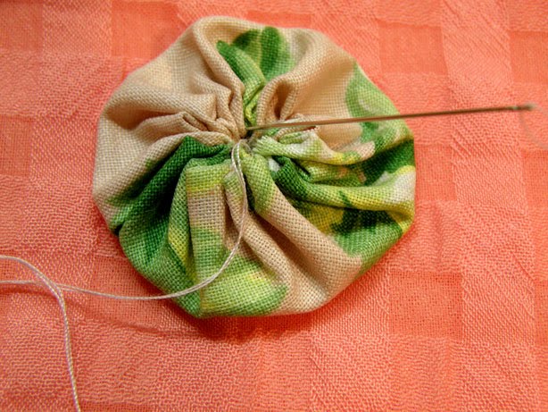 Cut out a cardboard circle twice as big as you would like your yo yo’s to be.|