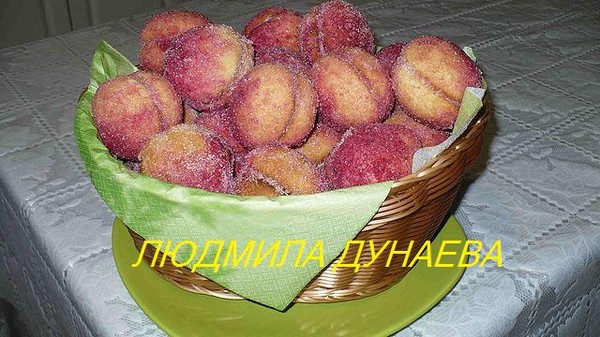 Достаем тесто из холодильника и делим его на кусочки, скатываем шарик и в каждый шар вдавливаем половинки скорлупы грецкого ореха (их предварительно смазать маслом и обсыпать мукой). Это для того чтобы внутри получилась выемка, которую потом заполняем кремом и можно положить в каждый "персик" миндальный орех. Выпекаем половинки 8-10 минут при температуре 180-200 градусов. Готовые половинки заполняем кремом, соединяем и окрашиваем один бок морковным, а второй свекольным соком и обсыпаем сахаром. "Персики" готовы. Приятного чаепития!!!