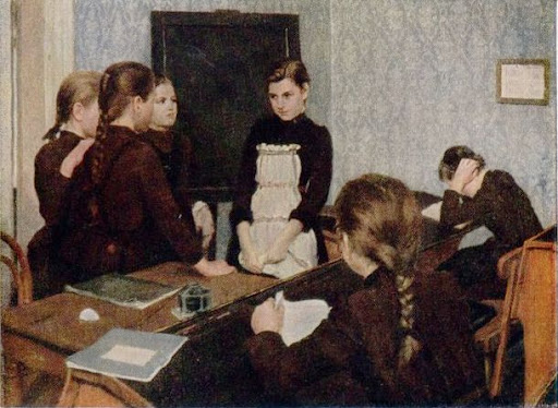 Karen Elizabeth Tornoe (Denmark, 1847-1933) «In The Classroom» 1888