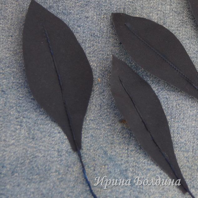 Теперь нам понадобятся инструменты. Двужильным ножом с лицевой стороны проводим по нашему летону, получается сердцевинка листочка.