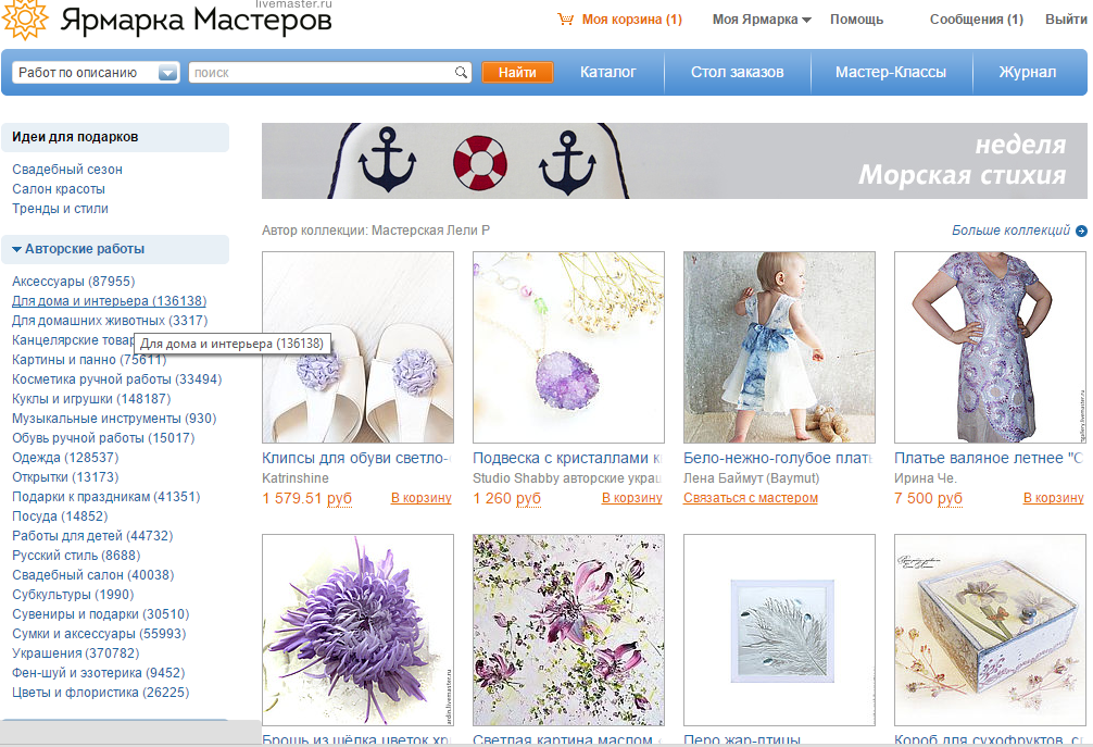 Этот сайт позволяет многим специалистам эффективно продвигать свои услуги, украшения хендмейд. При этом следует учесть, что бесплатно можно выставить на всеобщее обозрение лишь 3 работы. После этого придётся каждый месяц тратить определённую сумму для того, чтобы оставаться на сайте. В то же время, оплата услуг ресурса вполне оправдана результатом, который достигается мастером. Как показывает практика, множество страниц с фотографиями работ добавляются в закладки пользователями, которые заинтересованы в приобретении украшений ручной работы, ежедневно совершают приличные покупки.