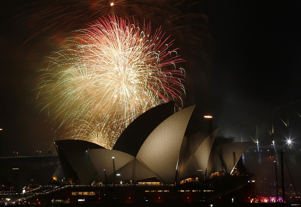 Салют над "Сидней Опера Хаус" в австралийском Сиднее. Жители этого города одними из первых встретили Новый год.