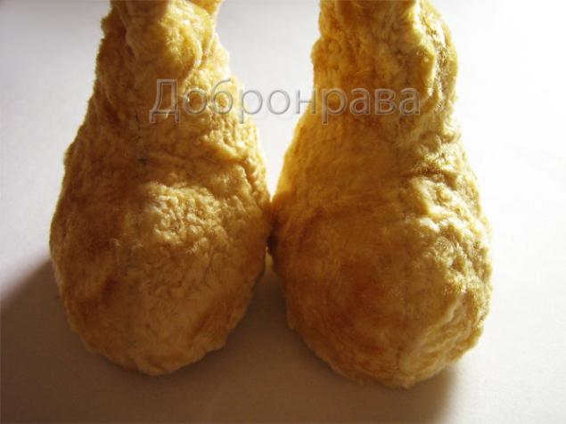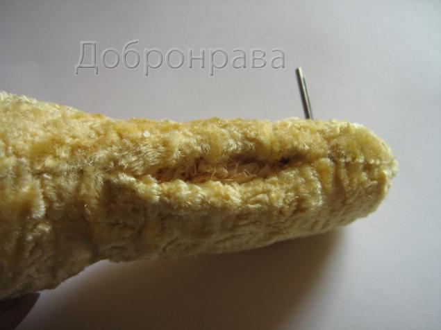 Девочки, нога у нас хоть уже и набита, но туда ещё может поместиться достаточное количество опилок и в месте шва тоже должно быть твёрдо и не быть никаких пустот и ямок.