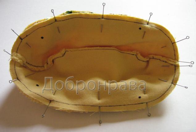 Ставим при желании побольше иголок и распределяем равномерно всё что у нас осталось сшить, равномерно распределяем ткань и сшиваем! Разглаживаем, растягиваем полностью все шовчики и при необходимости обрезаем лишнее. Очень нужно это делать аккуратно, чтобы со стороны, которую вы не видите не срезать случайно лишнее. Будет очень обидно!