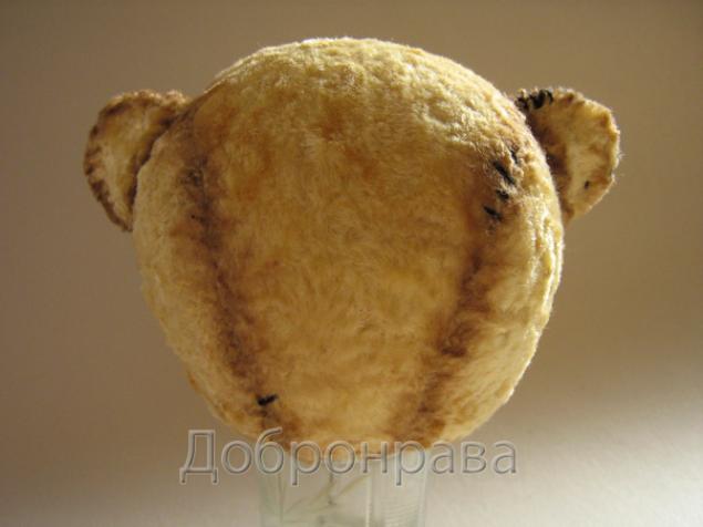 Теперь постарайтесь большими пальцами рук держа голову двумя руками мордой к себе примять места глазниц, нам надо сформировать ямки в которые мы будем ставить глазки, чтобы мишка не был лупоглазым с глазами навыкат. При качественной и плотной набивке это сделать не просто и я применяю подручное средство, у меня это мои любимые палочки для набивки, вот ими я и продавливаю ямочки под глаза. Процесс...