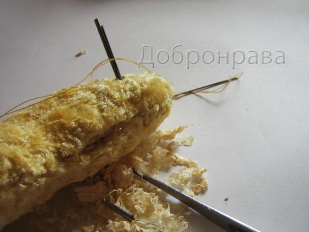 Набиваем до конца и повторяем процесс зашивания отверстия, как и на ножке.