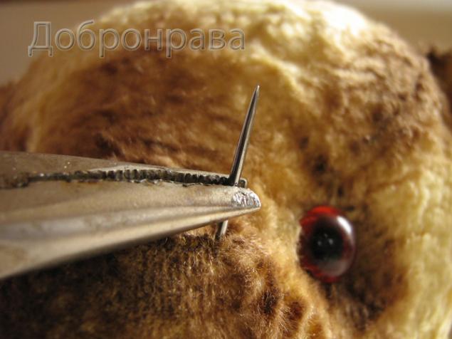 Вывожу иголку рядом со швом на носике. Иногда приходится помогать себе плоскогубцами.