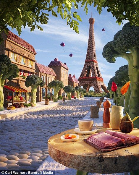 Невероятно вкусные пейзажи из продуктов питания создаёт фотограф Карл Уорнер в своей лондонской студии. По мнению Уорнера его работы направлены на поощрение здорового питания среди детей младшего возраста.