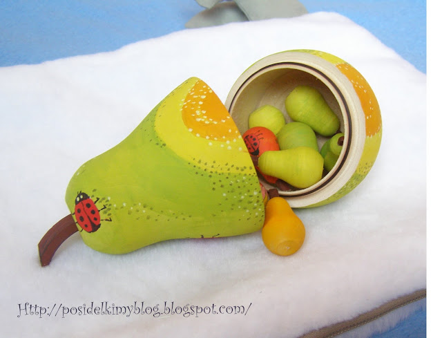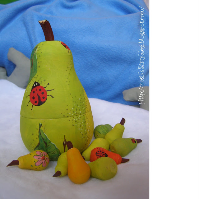 Расписала для ребенка счетный набор. Большая груша сделана по типу матрешки, внутри маленькие грушки(их мне помогал разукрашивать сынуля), по ним учимся считать и складывать.