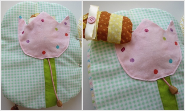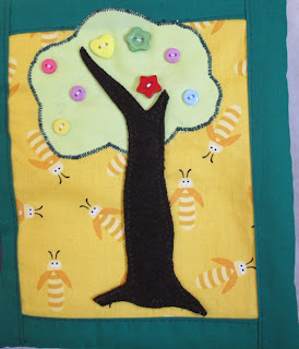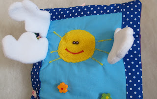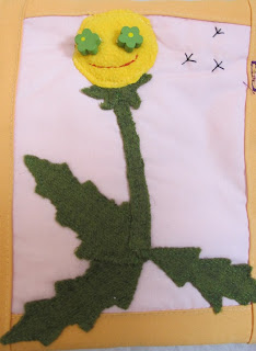 Солнышко из флиса. Планировалось,что это будет задняя обложка, поэтому пришита нашивка, но потом я слегка перепутала, а нашивку не стала отпарывать, она не мешает.