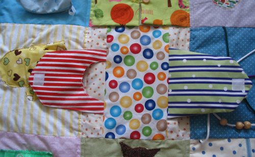 Кубик «Сенсорный»: стороны кубика оклеены кусочками ткани разной фактуры – бархат, шелк, мешковина, мех, велкро и т.д. Ощупываем поверхность и описываем свои ощущения. Ищем с закрытыми глазками шершавую, гладкую и др. поверхность.