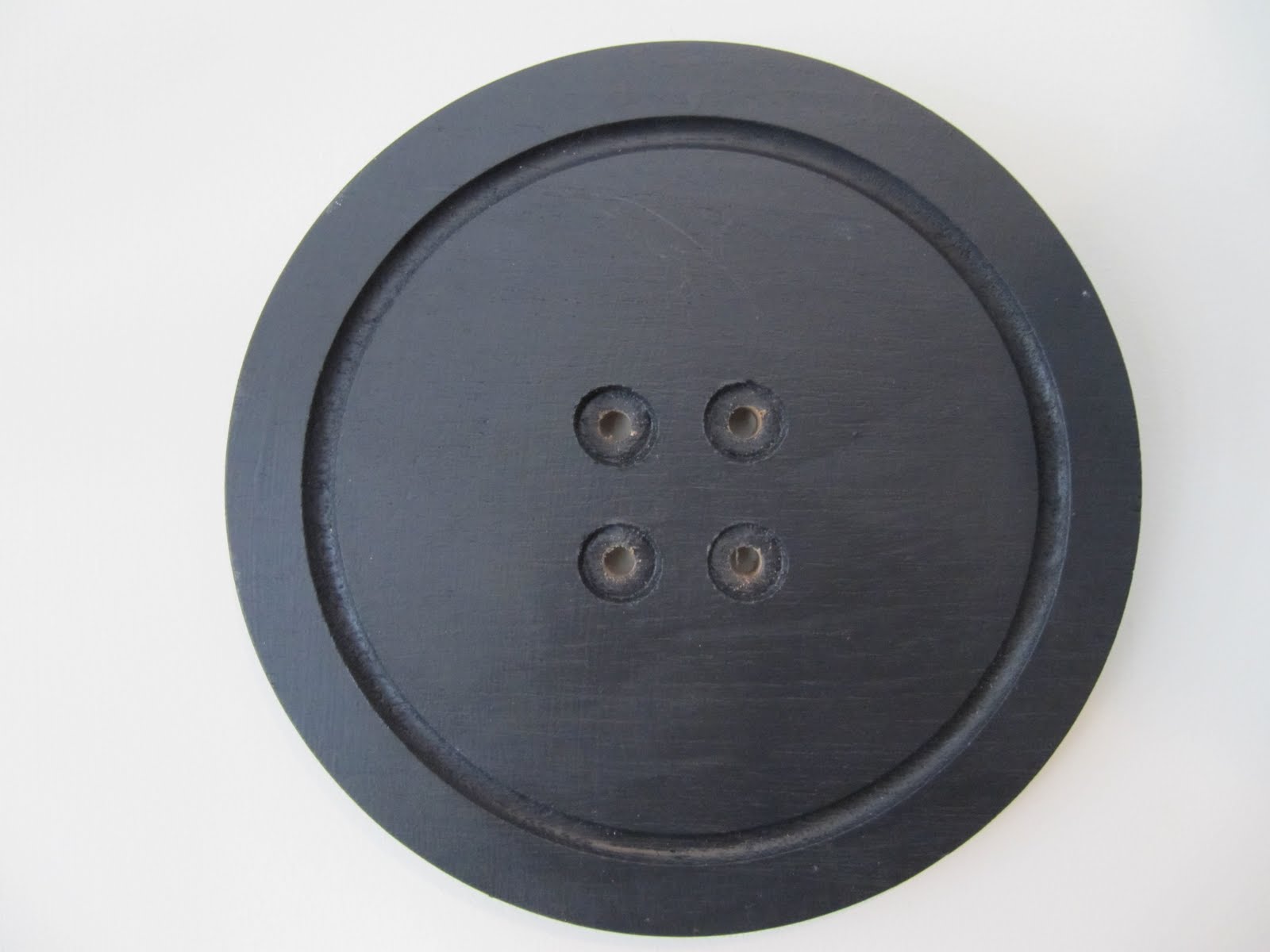 My mom loved teak wood...anything teak wood. She would buy it all in yard sales and thrift stores. Well, I think she cringed a little from up above when I took a drill and a paint brush to one of her pieces. I had one of her cheese boards tucked away in a closet...within minutes, look how darn cute it turned out. I think she's ok with it, because she was the best seamstress ever and would love this button!