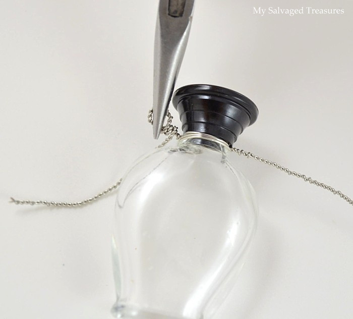 2) Wrap it around and connect a link of the chain to the next hole of the gem, using another jump ring.