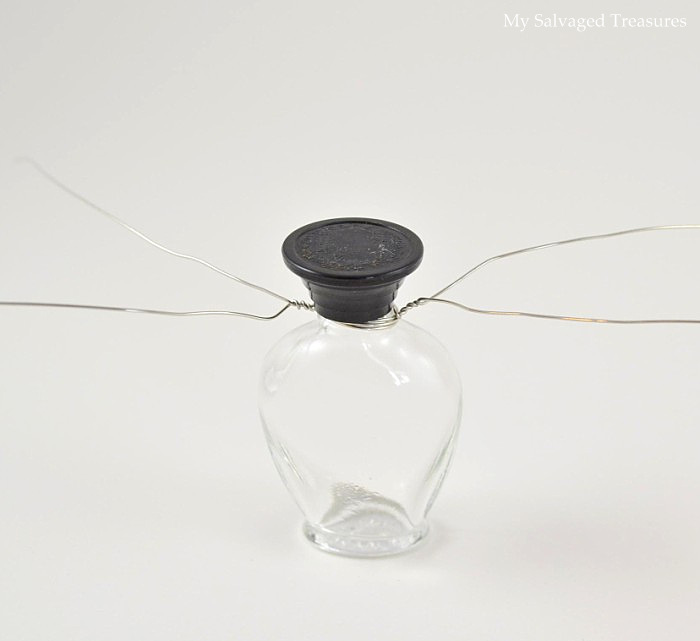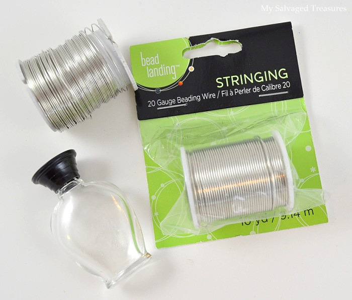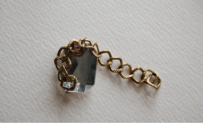 4) If there were multiple holes around the entire gem, more jump rings could be used to keep the chain in place. However, with only 2 holes in most sew-on gems, the chain will most likely be sliding every which way. I used some wire to weave in and out of the links, which kept the chain in place.