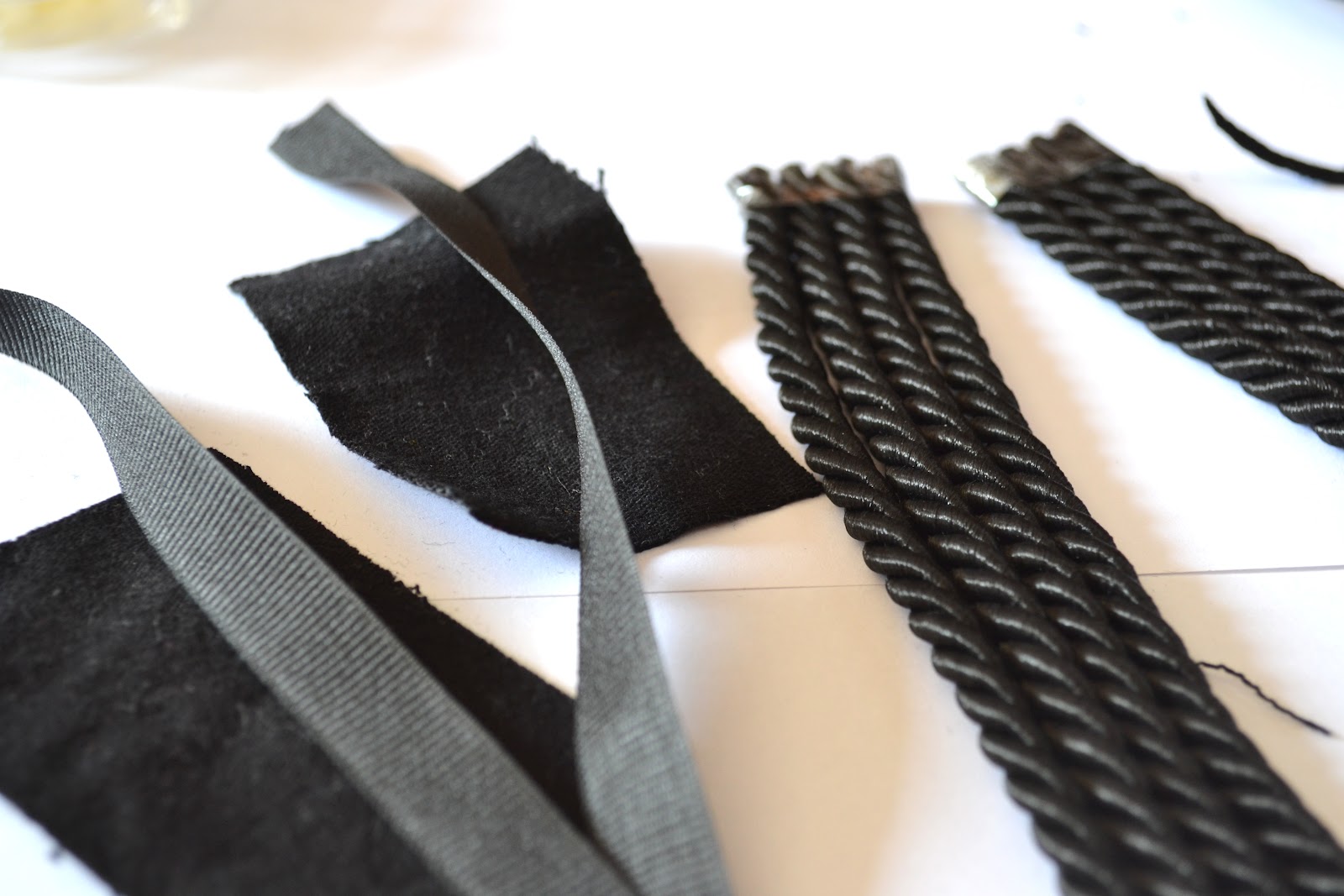 I used black Fimo Soft polymer clay. I also used black chain from a broken necklace, lobster clasp for closure, eye hook screws and nail files.