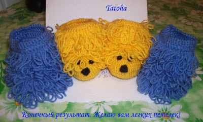 2 ряд: в каждую из 5-ти крайних петель (мысок и пятка) связать по 2 столбика с накидом.