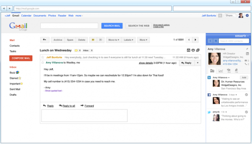 Расширение Smartr, о котором мы писали вот здесь, добавляет в ваш Gmail новую информационную панель, на которой вы сможете видеть всю информацию из социальных сетей, связанную с автором просматриваемого письма или его темой.