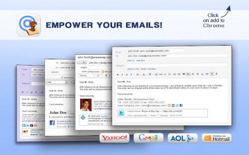 Подробный обзор этого расширения уже был на наших страницах. Напомним, что WiseStamp позволяет создавать отлично оформленные подписи для ваших писем, содержащие ссылки на ваши аккаунты в социальных сетях, ссылку на сайт или блог, контактные данные и так далее.