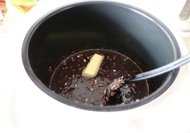 4. Сливовое пюре теперь нужно проварить. Это можно сделать в кастрюле на плите, а можно в мультиварке. Я так и решила поступить. Варить сливовое пюре нужно в режиме "Тушение" (всего 15 минут).