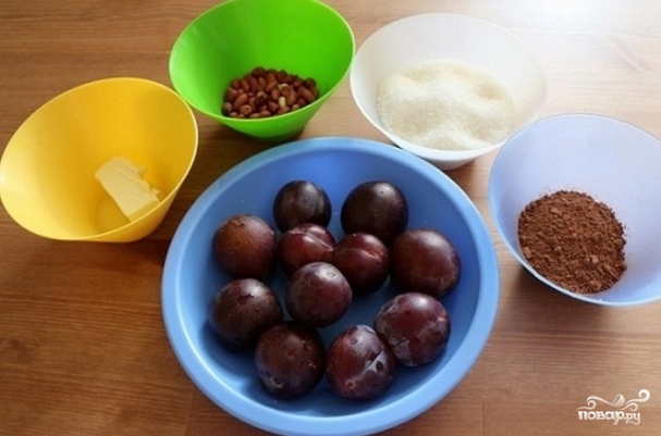 рецепт приготовления сливового варенья. В данном случае нам понадобится кроме фруктов еще какао, арахис и сливочное масло.